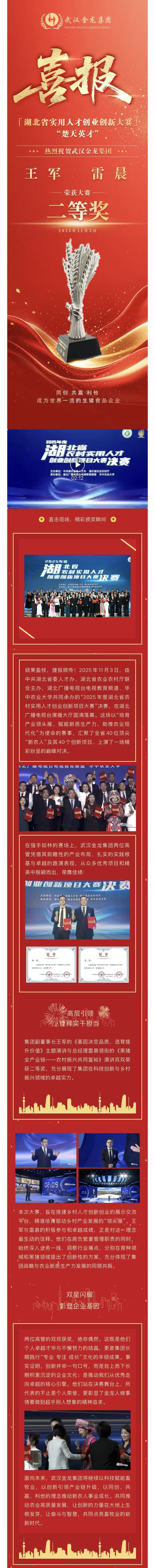 喜报|双星同辉,共膺殊荣!热烈祝贺王军、雷晨在湖北省实用人才创业创新大赛中斩获佳绩!