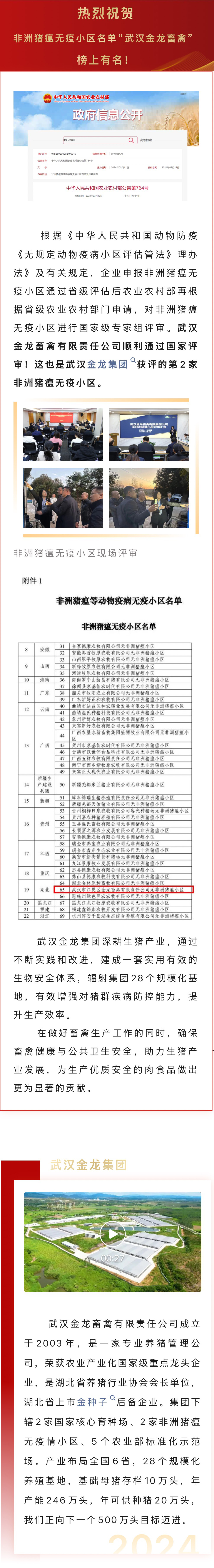 热烈祝贺|“武汉金龙畜禽”再次获评非洲猪瘟无疫小区