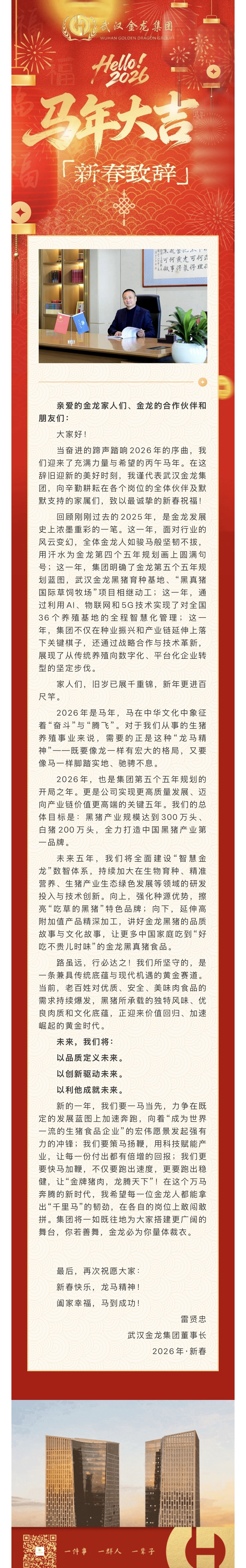春风策马赴新程——武汉金龙集团董事长2026新春贺词